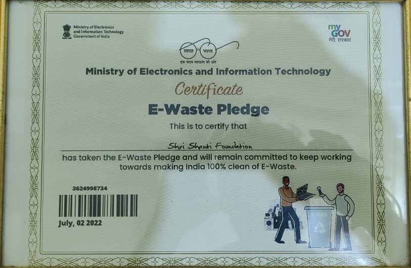Shri Shanti Foundation proudly participates in national pledges including E-Waste awareness, Soil Day conservation, and Jan Aushadhi health initiatives.